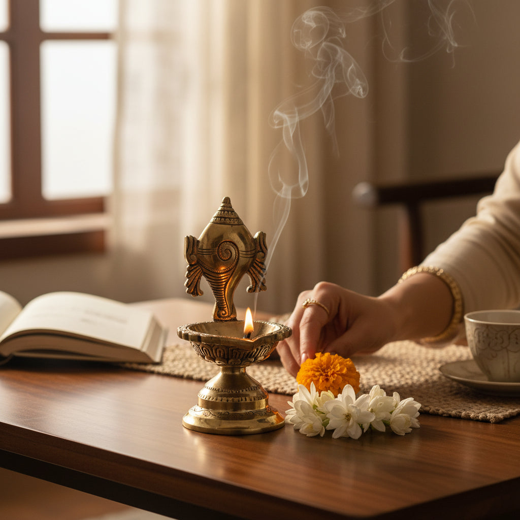The rich texture of brass not only offers durability but also enhances airflow, allowing for a steady flame that dances beautifully. This diya isn’t just a candle holder; it’s a statement piece that transforms your atmosphere.
