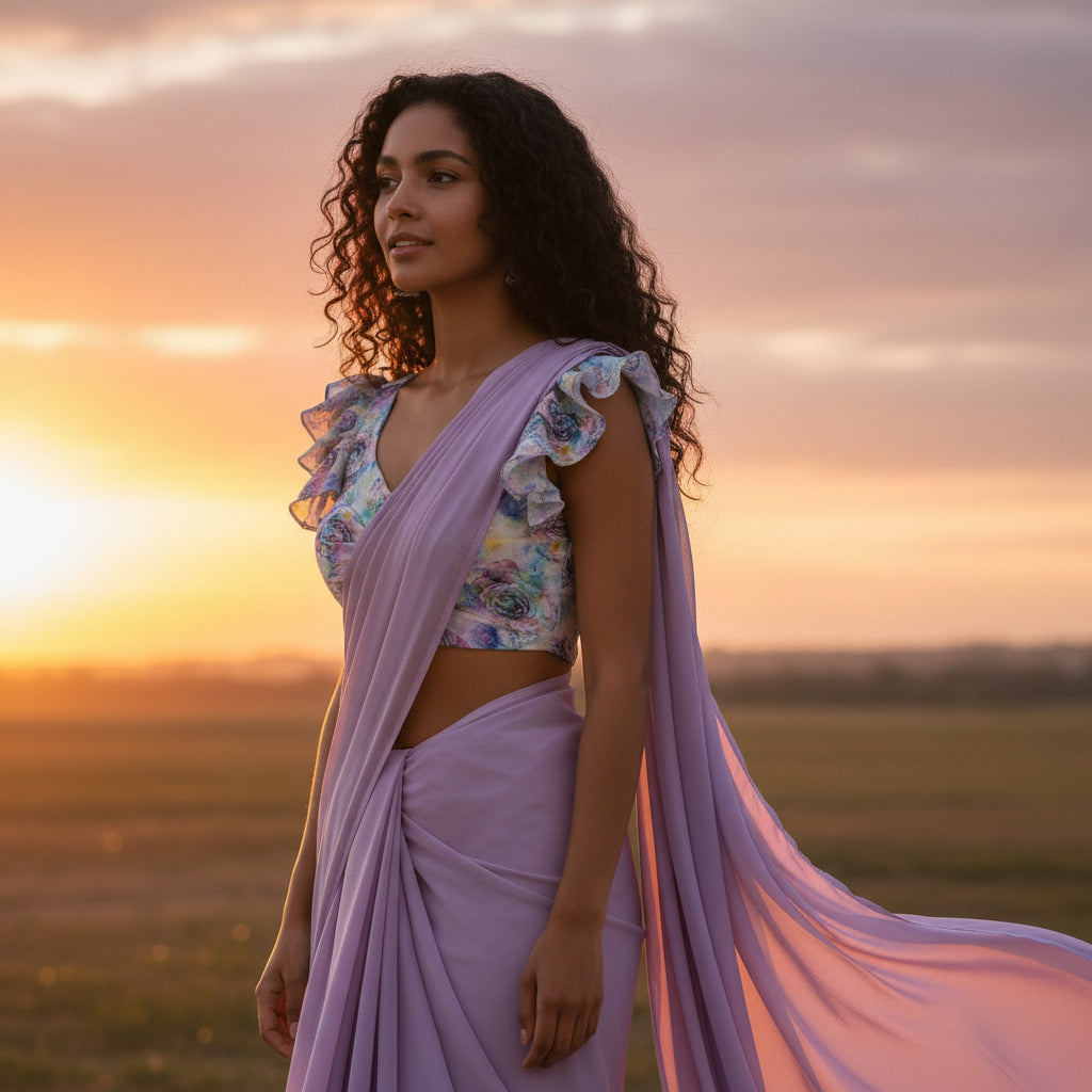 The delicate fabric drapes beautifully, adding a touch of elegance while preventing cling and those pesky wrinkles. Its ruffled sleeves allow for effortless movement, enhancing your silhouette and grace.