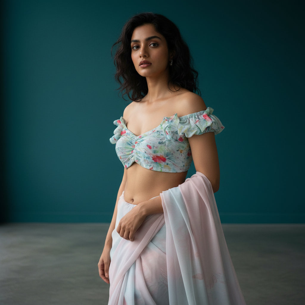 The lightweight chiffon fabric drapes smoothly over your skin, allowing for effortless movement. With ruffled sleeves that frame your arms, it elevates your look, blending casual charm with refined sophistication.