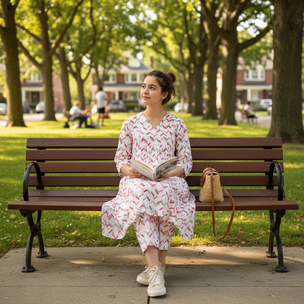 The breathable fabric helps keep you feeling fresh while the unique chevron pattern brings a pop of personality to your wardrobe. You’ll love how it flows with your movements, draping beautifully without any fuss.