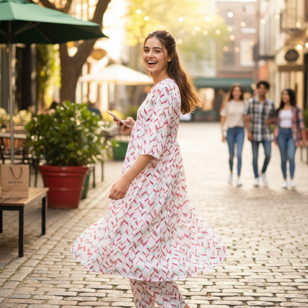 Tired of outfits that cling, wrinkle, or leave you feeling hot and uncomfortable? This tunic set is crafted from premium cotton, which means it’s light as a feather and lets your skin breathe.