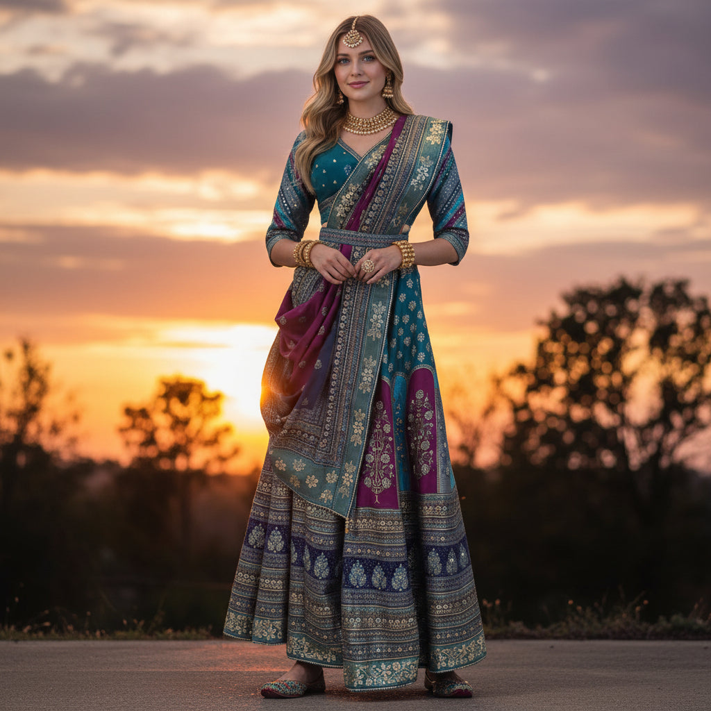 Ever felt the discomfort of heavy fabrics clinging to your skin on a warm day? With this lehenga, you’ll experience the freedom of movement without the clinginess. Made from a luxurious blend of fine cotton and modal silk, this garment features breathable properties that help keep you cool.