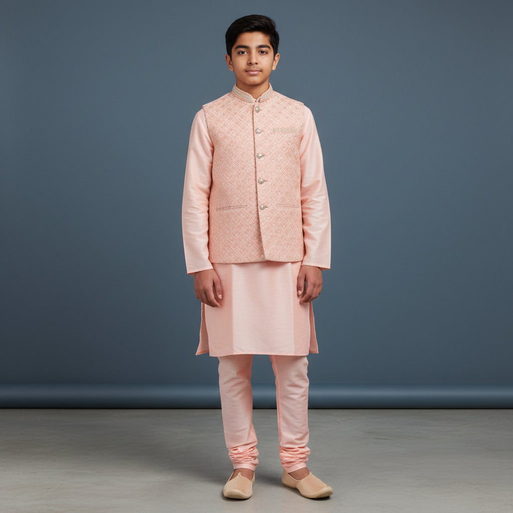Ever felt uncomfortable in traditional wear that just clings or wrinkles? We get it. That’s why this 3-piece kurta set combines a soft cotton-silk blend, designed to keep you cool and comfortable even during long celebrations.