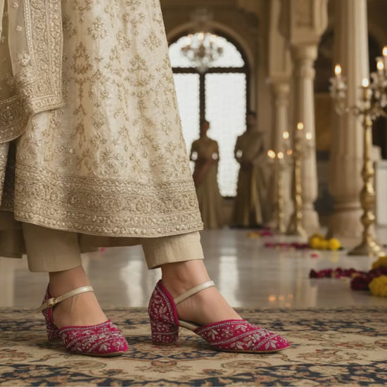 Elevate your ethnic look with these stunning Embroidered Heels, crafted for women who love to make a statement. Featuring intricate hand-embroidered detailing on a classic heel silhouette, these shoes seamlessly blend tradition with contemporary style.