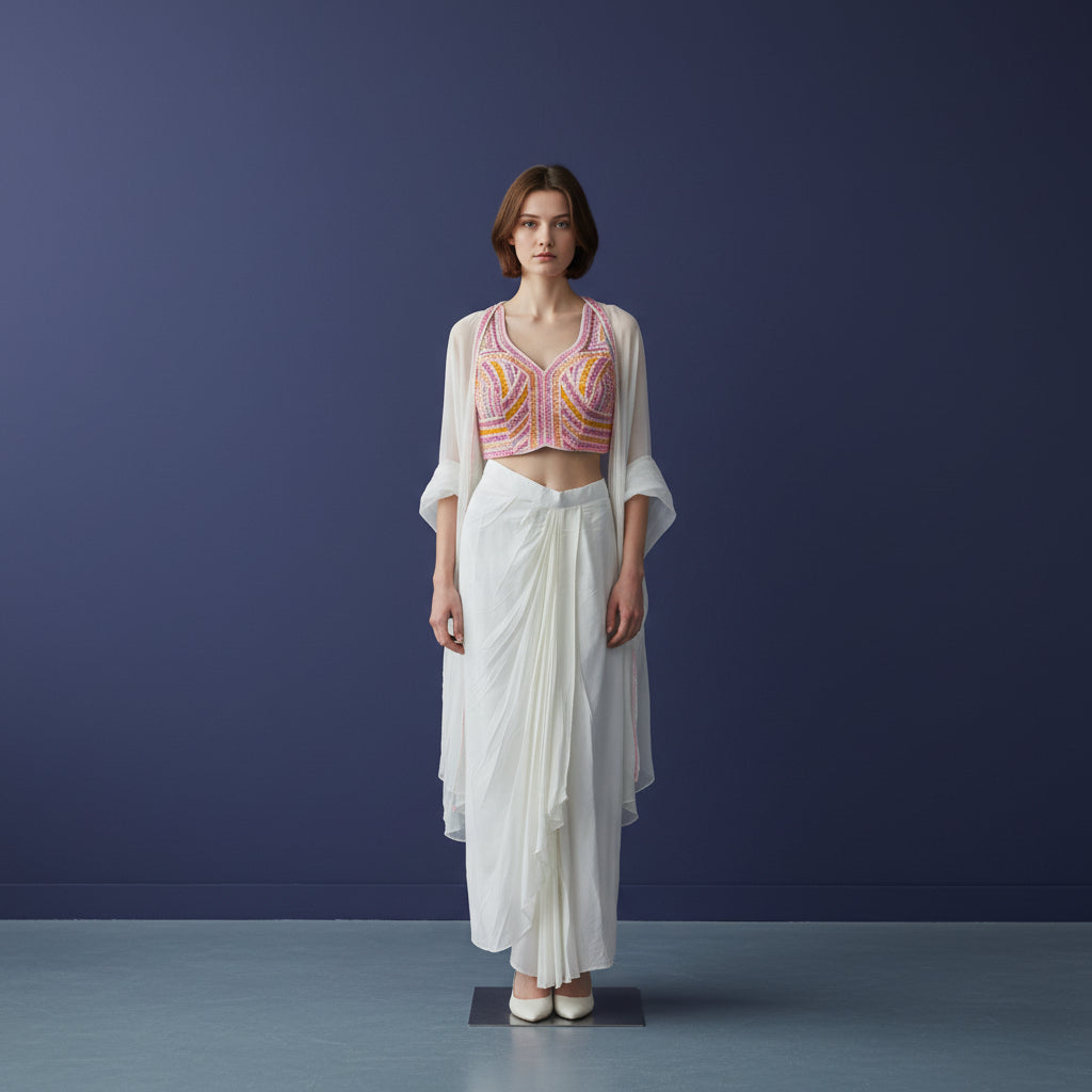 Georgette Draped Saree Skirt with Sequined Bustier
