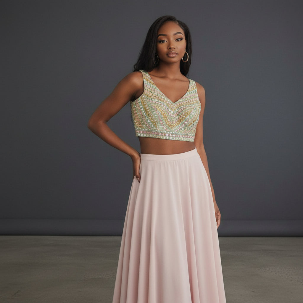 The intricate Gota Patti fabric not only looks stunning but also allows for breathability, ensuring you stay cool even when the temperature rises. Its light weight means you can move with ease, perfect for dancing the night away.