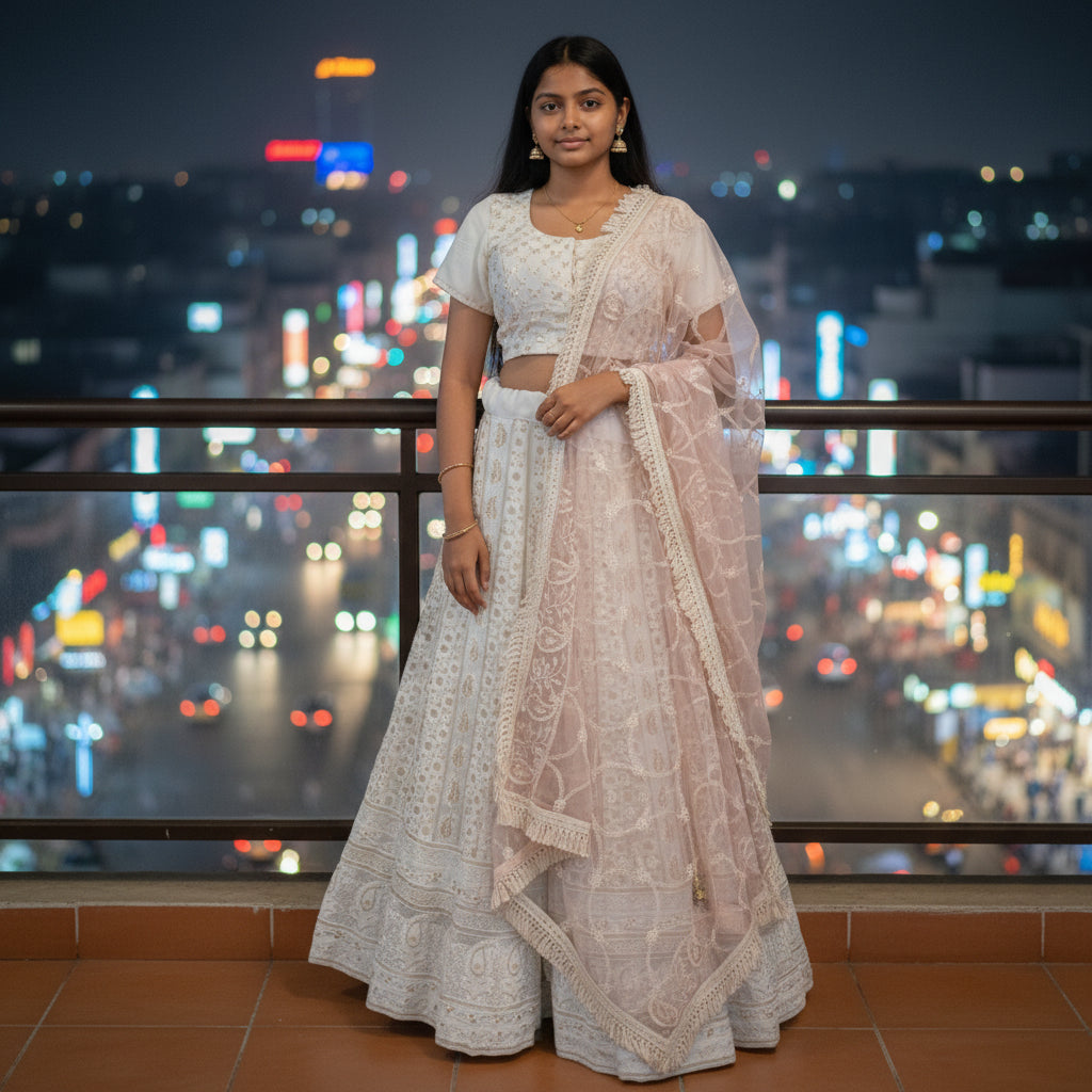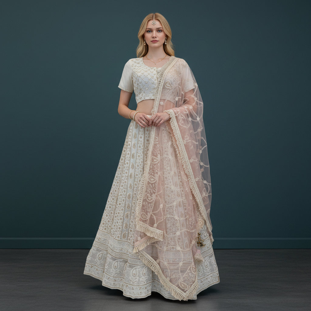 | Category & Style | Ethnic, Female, Indo Western, Lehenga, Net / Georgette with Embroidery |