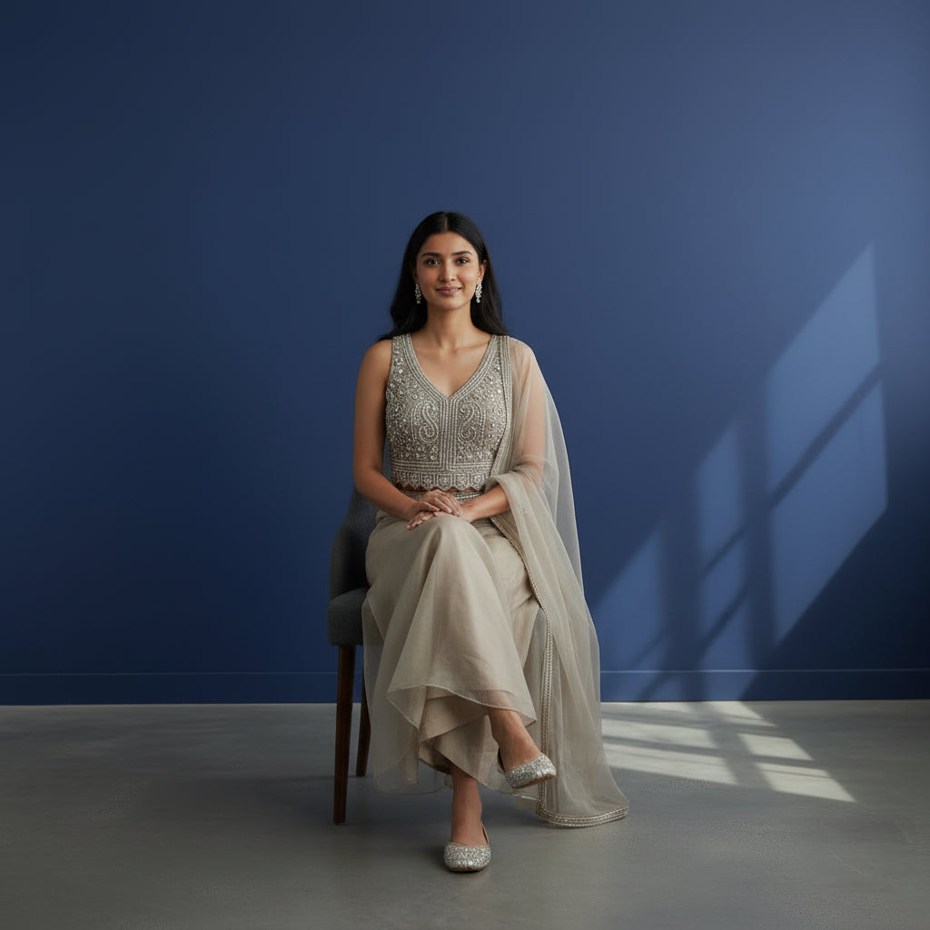 Crafted from high-quality organza, this outfit is designed to provide a gentle drape that moves gracefully with you, ensuring you stay cool and comfy no matter the occasion.