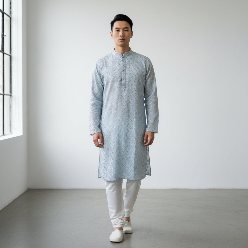 Tired of dealing with uncomfortable fabrics that cling to your skin or add unnecessary heat on warm days? Meet your new favorite piece. Crafted from 100% premium polyester, this kurta brings you breathability and a smooth touch that won’t betray you.