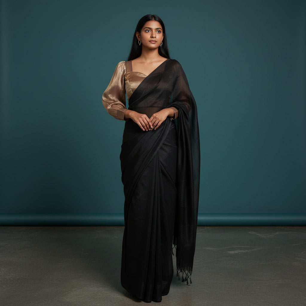 Sheer Organza Puff Sleeve Designer Blouse