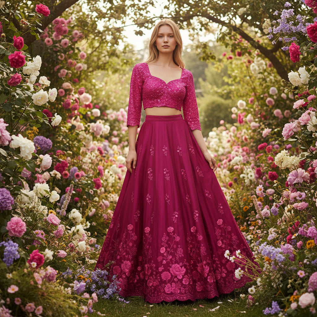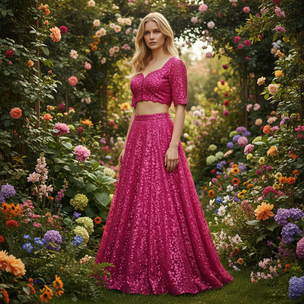 With intricate floral embroidery and dazzling sequins, this fabric elegantly drapes to keep you cool while adding a touch of elegance. The sheer material allows for effortless layering, giving you versatility without sacrificing comfort.