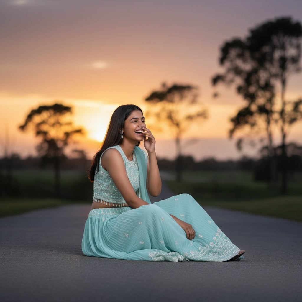With floral embroidery that dances along the blouse and skirt hem, the craftsmanship speaks volumes without saying a word. The pleated skirt flows beautifully, allowing for effortless movement whether you're twirling on the dance floor or strolling at a garden party.