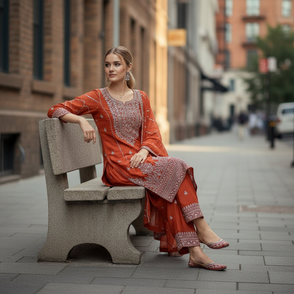 The intricate mirror and foil work adds a touch of elegance without compromising on flexibility. You'll love how the fabric gracefully drapes, allowing for easy movement without feeling restricted.