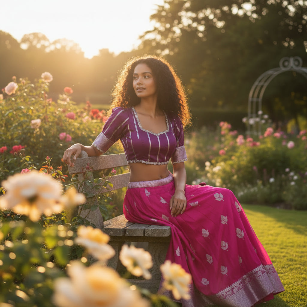 Tired of uncomfortable outfits that make you feel too hot and sticky? We get it. When the sun's out, you want breathable, light fabrics that let your skin breathe while still looking fabulous. This silk crop top, paired with a dual shade skirt, addresses those pain points effortlessly.