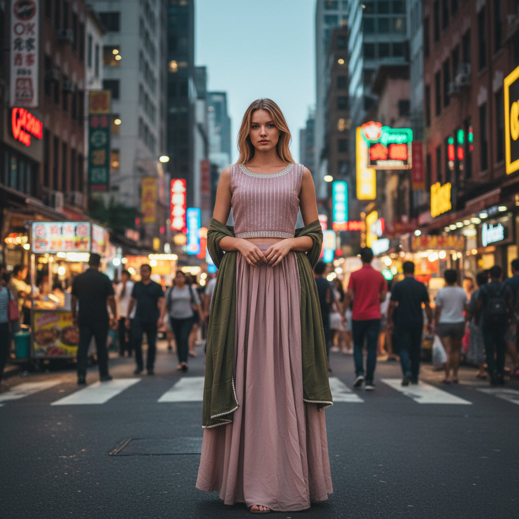 Tired of outfits that feel heavy and clingy? This three-piece set is designed to keep you feeling light and breezy. Crafted from an airy textured georgette, it glides over your skin, making discomfort a thing of the past. You'll love the elegant drape and subtle movement, perfect for any occasion where you want to shine.